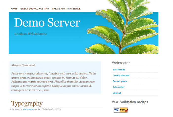 - Five block regions - content, right sidebar, footer 1, footer 2, and footer 3